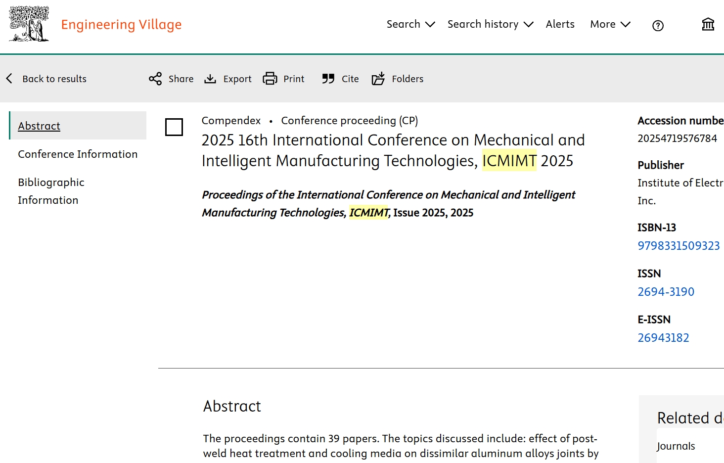 News! ICMIMT 2025 conference proceedings has been indexed by Ei Compendex and Scopus.